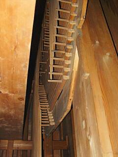 uloženy hřídele, k nimž vedou dřevěné