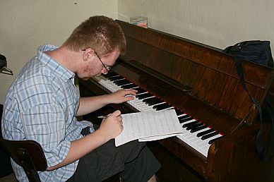 Koncert za chvíli začíná, je třeba honem dopsat noty na intrádu...