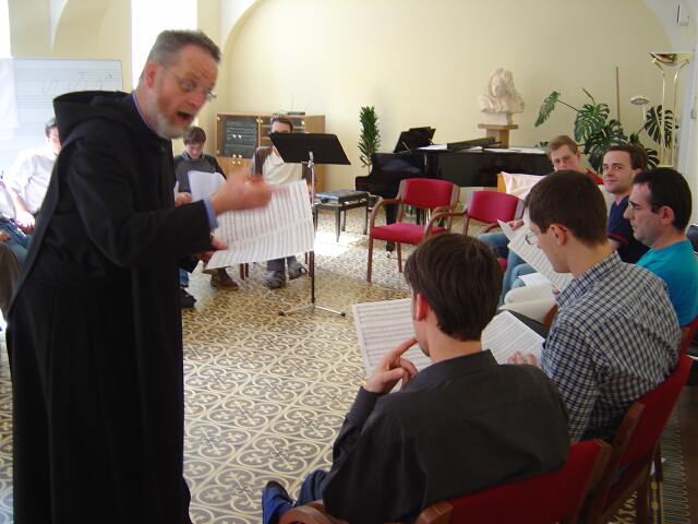 historii nám přednášel Fr. Gregor Baumhoff z Německa. Poutavou přednášku doplňovaly ukázky zpěvu. V odpoledních