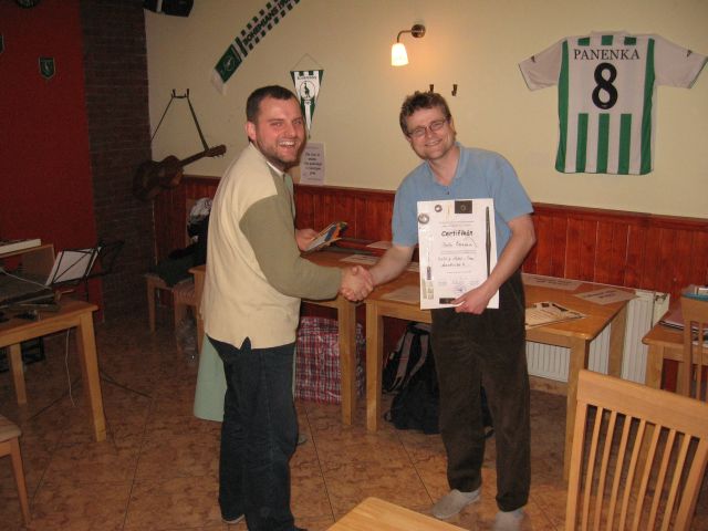 Pavel Černý se raduje z certifikátu potvrzujícího účast na Podivné konferenci