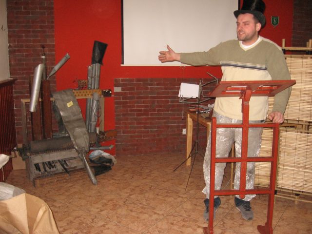 Součástí přednáškového odpoledne byla i podivná výstava neméně podivných předmětů s varhanní tématikou. Jednotlivé předměty byly nakonec vydraženy účastníky