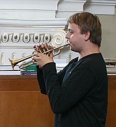 Žesťová sekce Varhaníků on-line, odpočívající varhanice a nadšená posluchačka