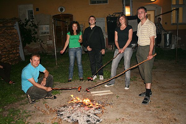 Pokoncertní program maraTÓNu zahrnoval tradiční posilnění opečenými klobásami. Přesně na začátek této části